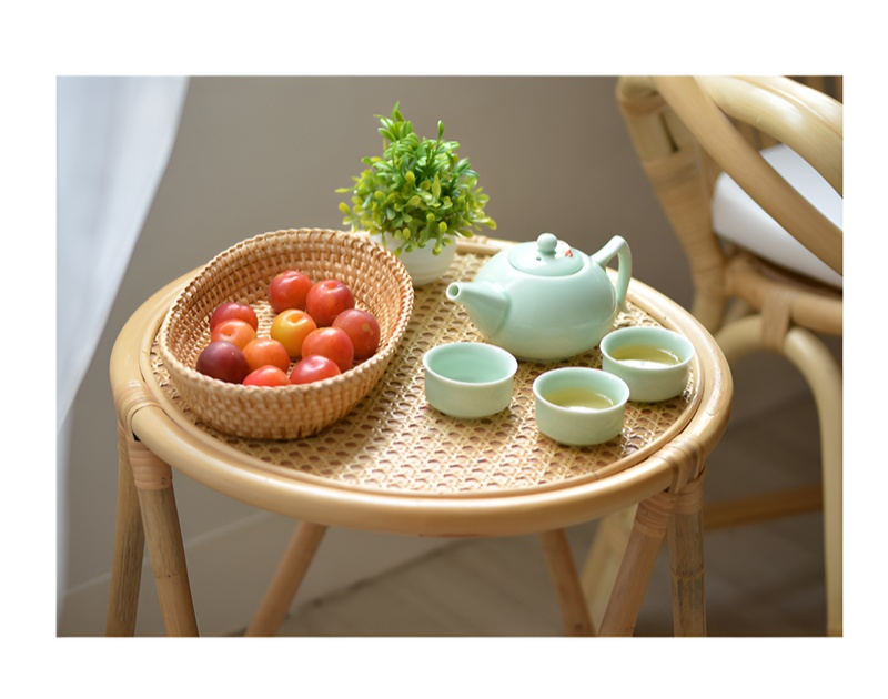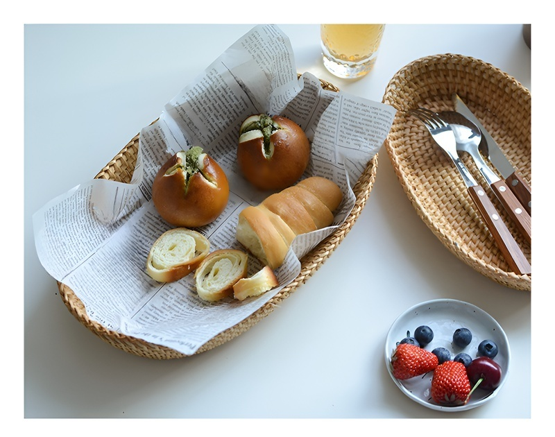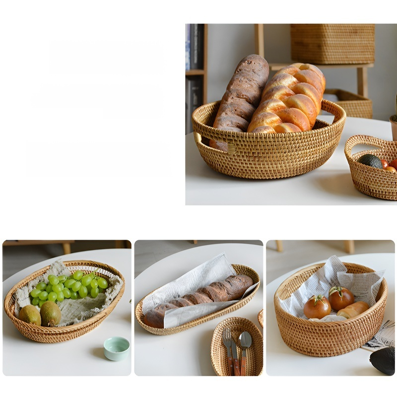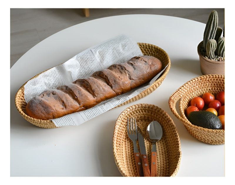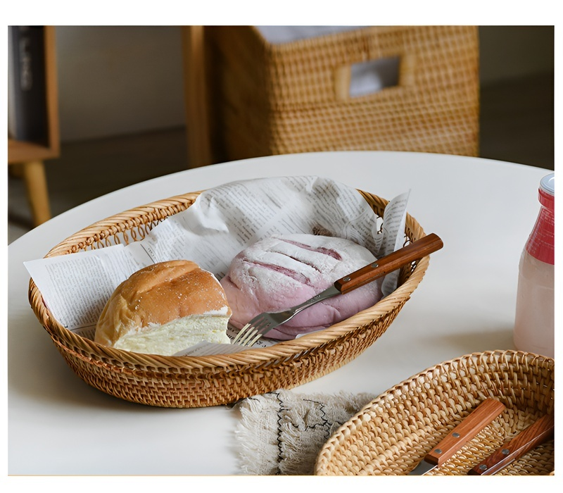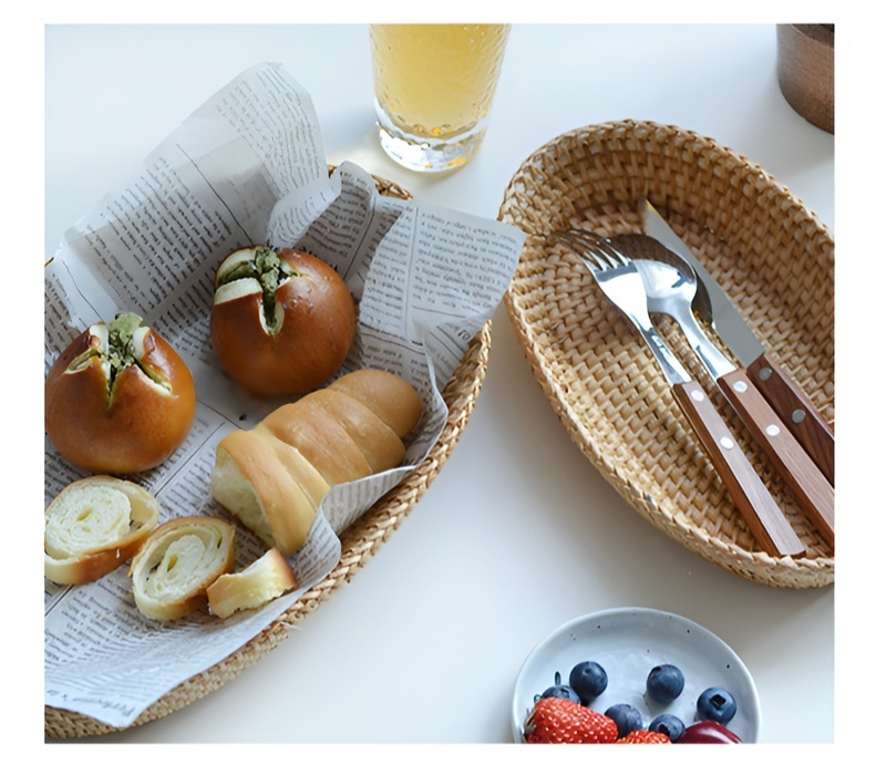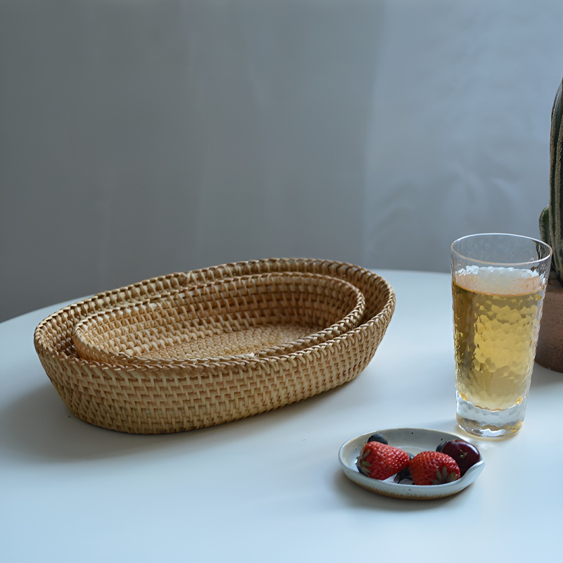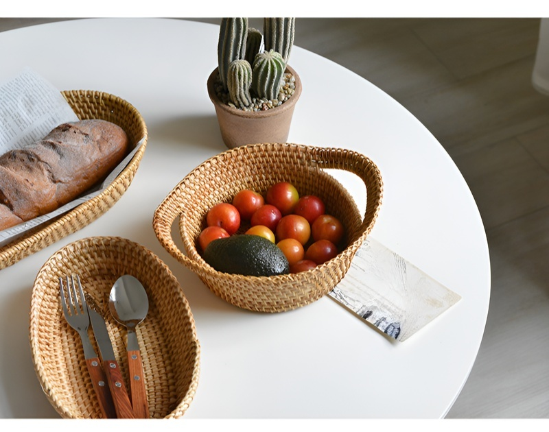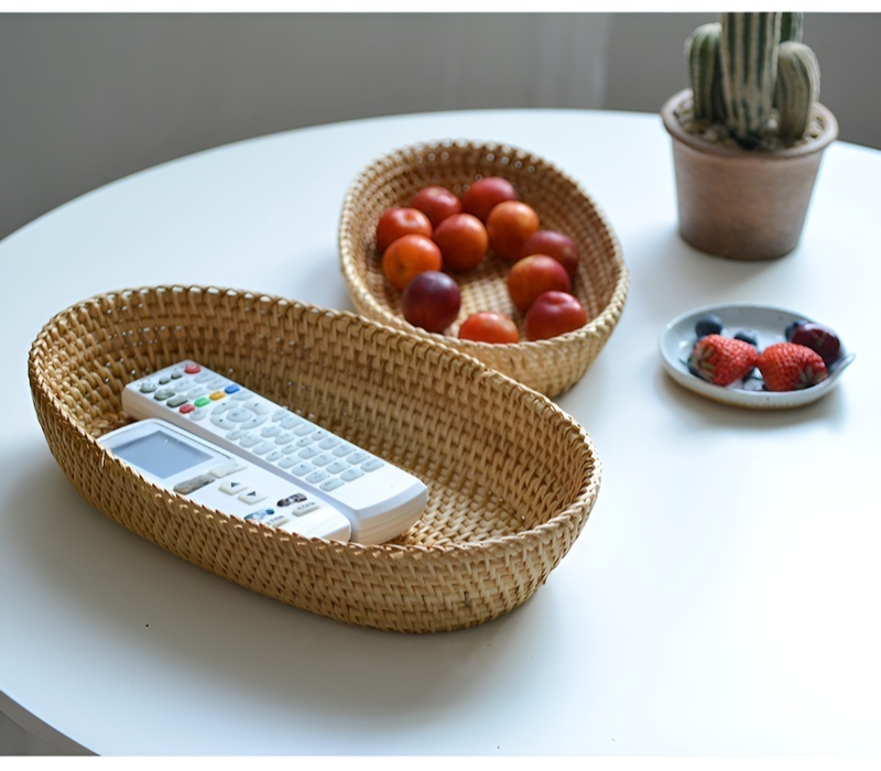 Nordischer Obstkorb aus geflochtenem Holz und Rattan